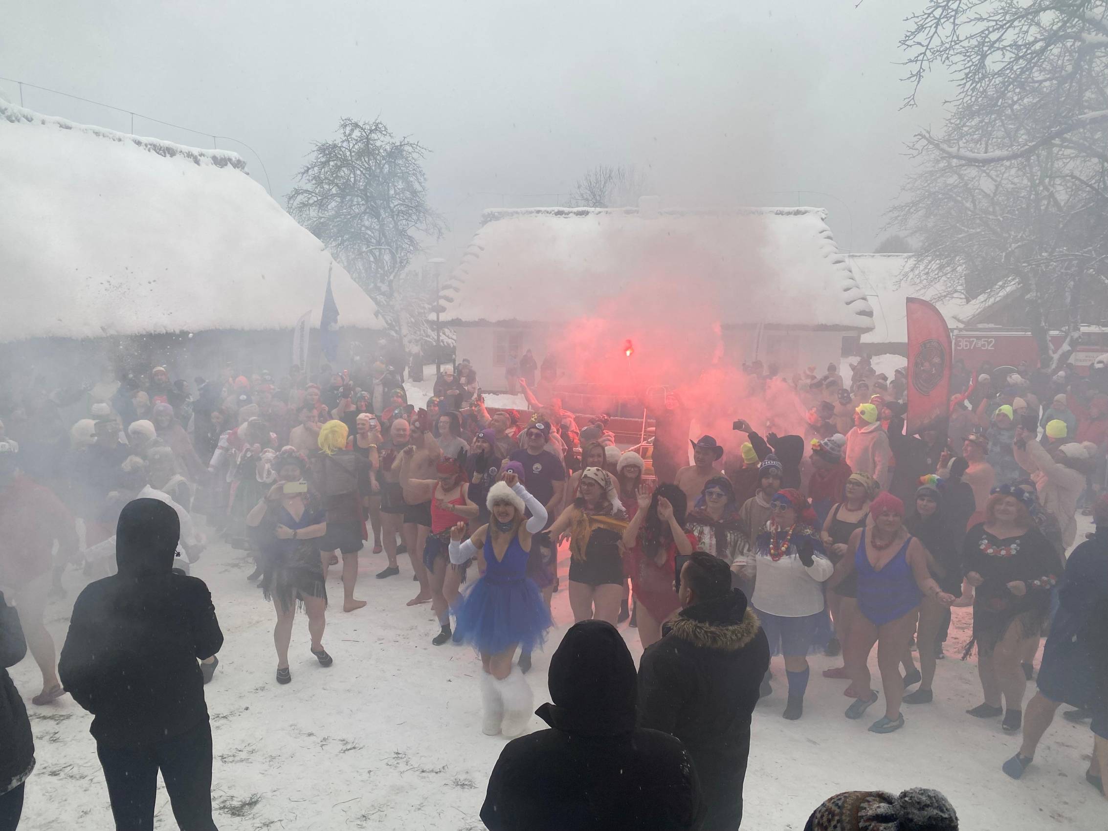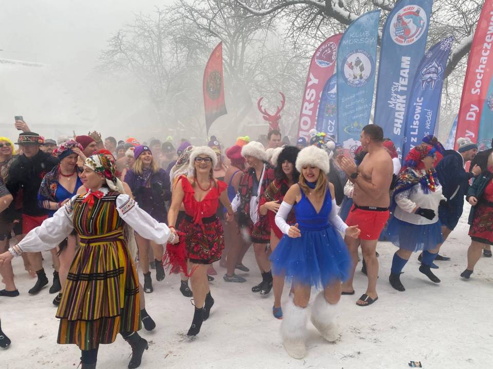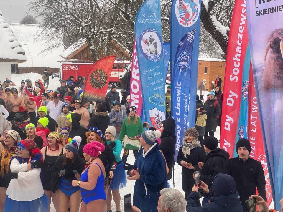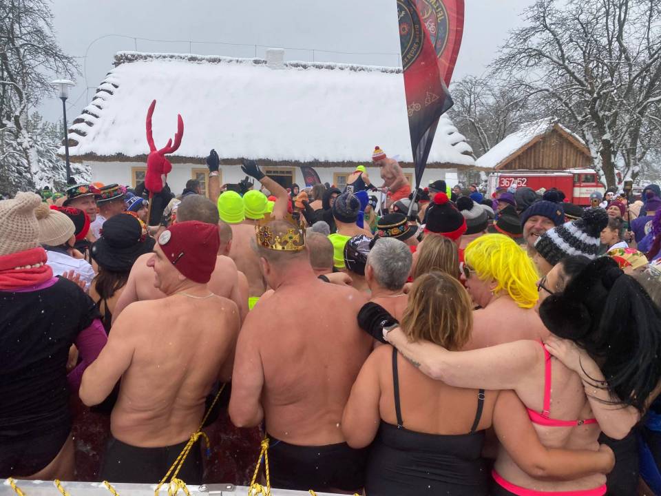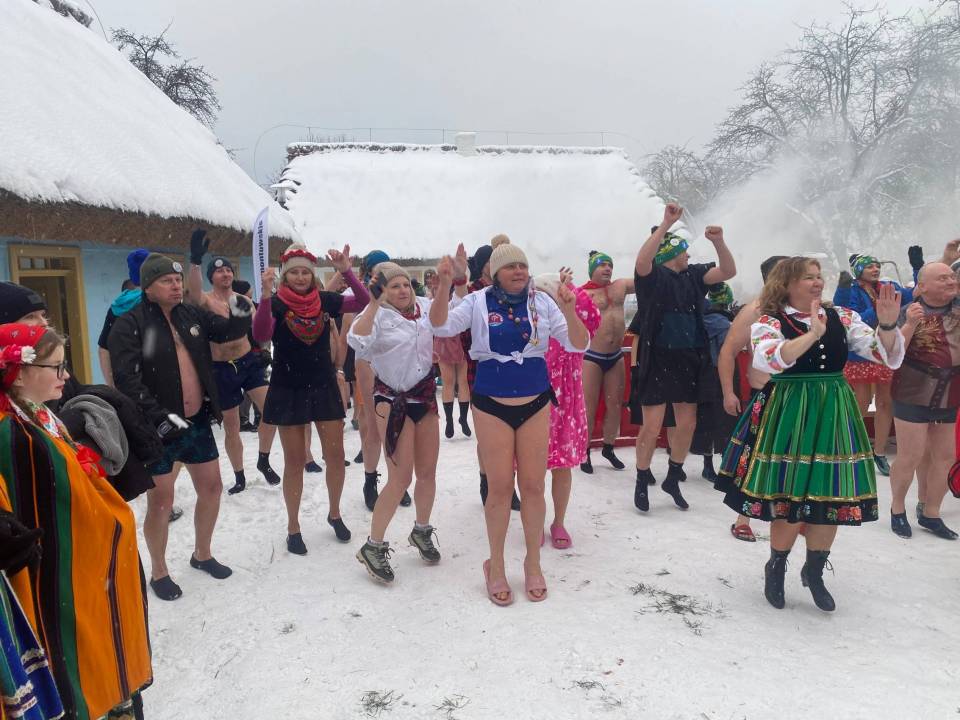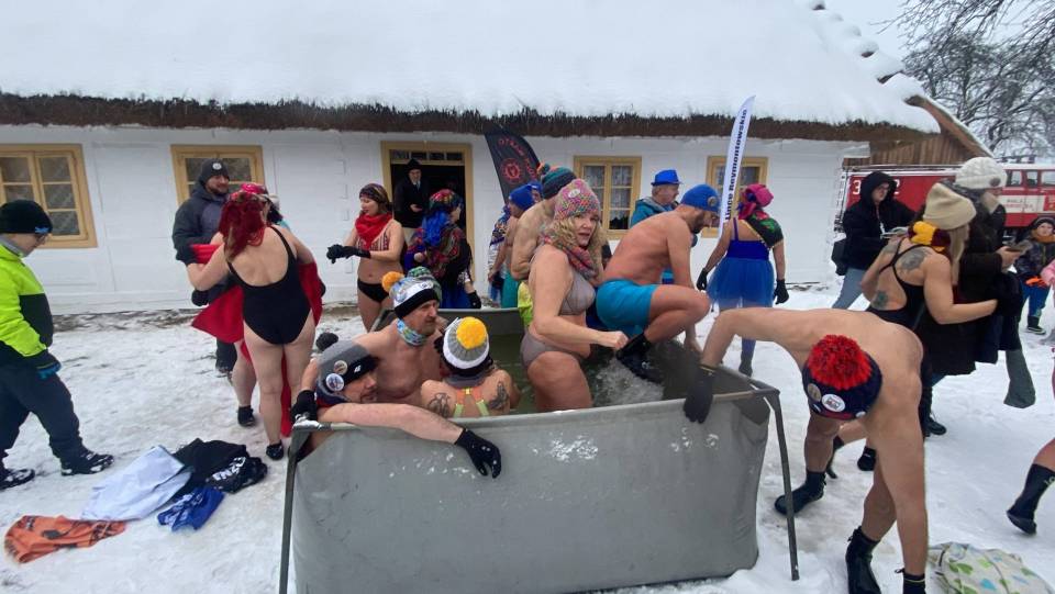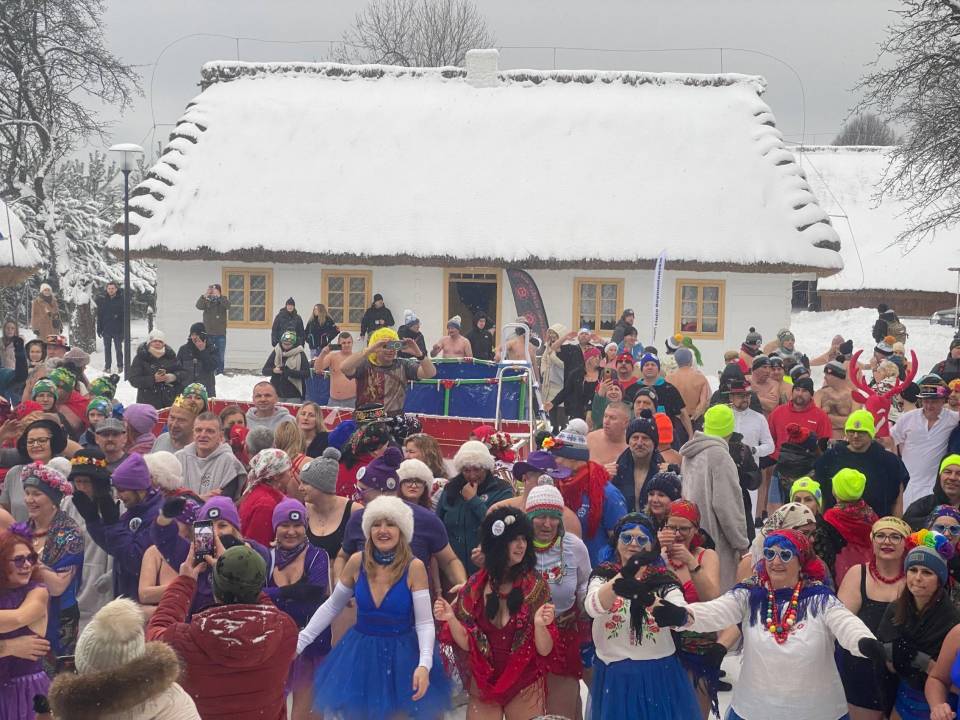 Baseny z lodowatą wodą ustawione wśród drewnianych chałup i zabytkowych zabudowań szybko stały się centrum wydarzeń. Uczestnicy, ubrani w kolorowe czapki, stroje kąpielowe i szerokie uśmiechy, z odwagą zanurzali się w zimnej wodzie, a każdemu wejściu towarzyszyły okrzyki dopingu i salwy śmiechu. Zdjęcia z wydarzenia nie pozostawiają wątpliwości - zabawa była przednia, a energia uczestników zaraźliwa.