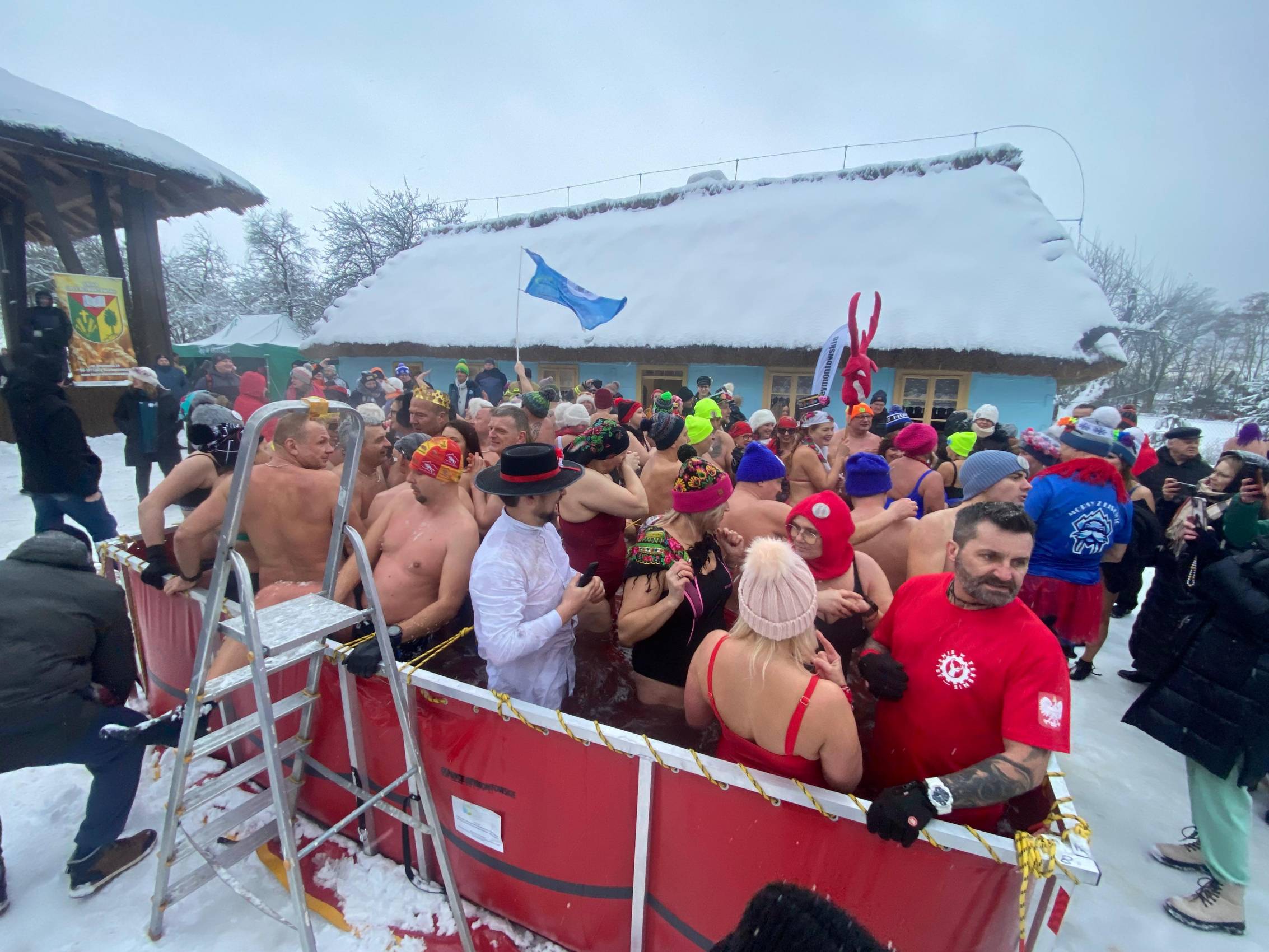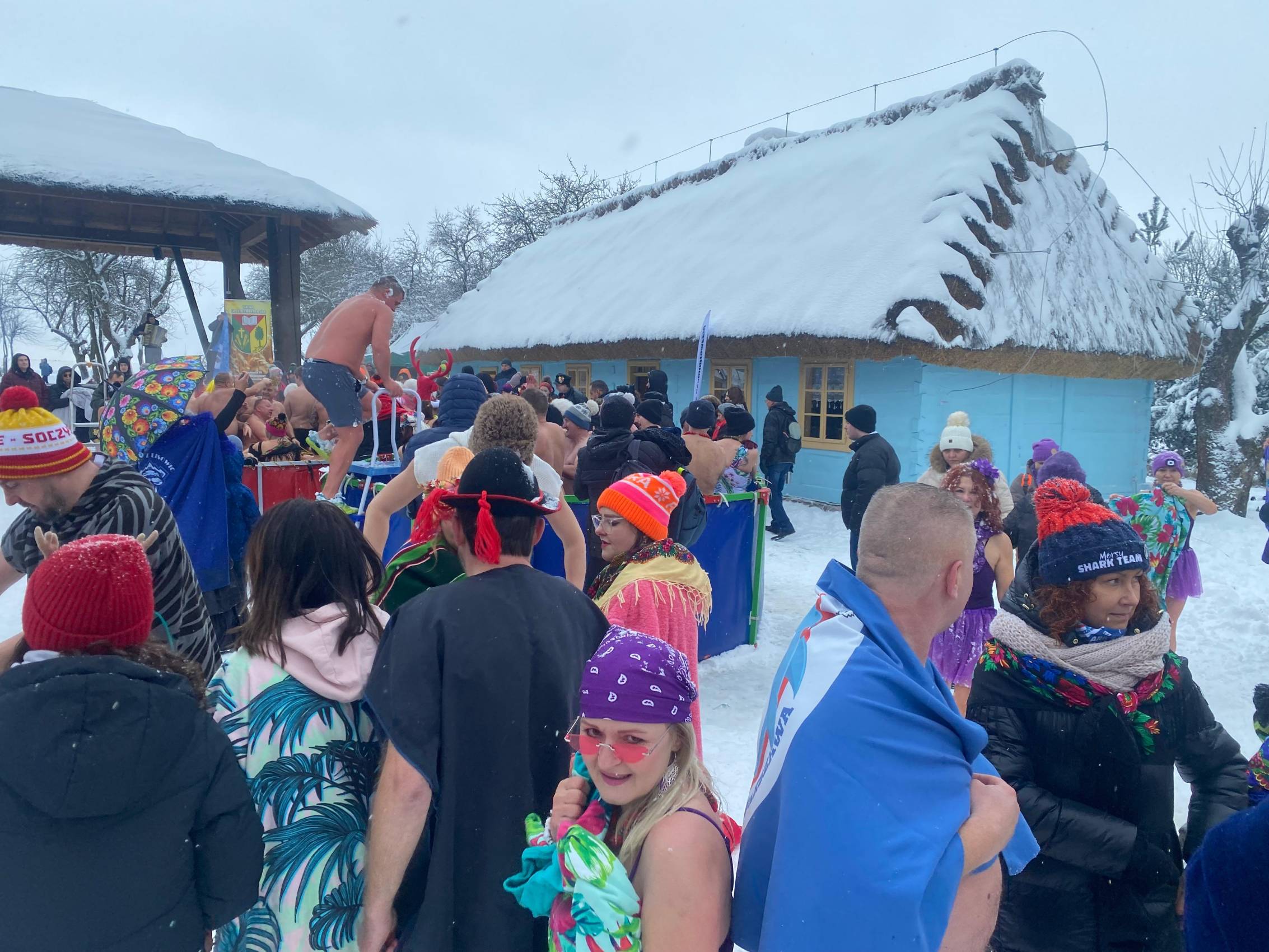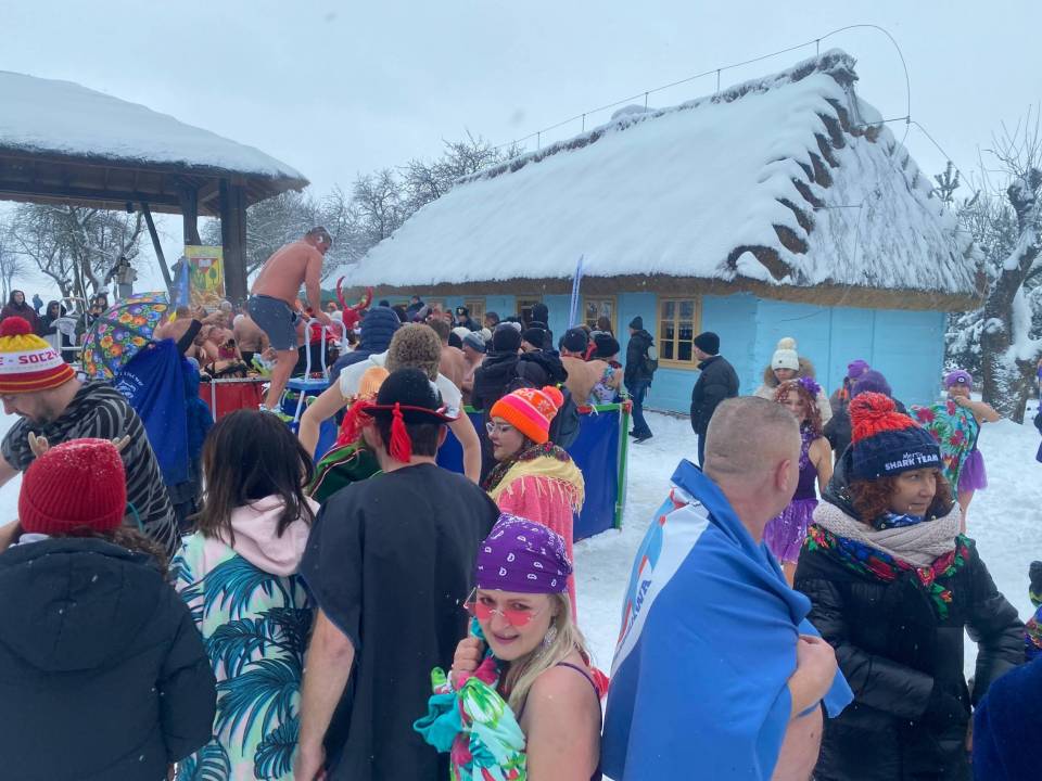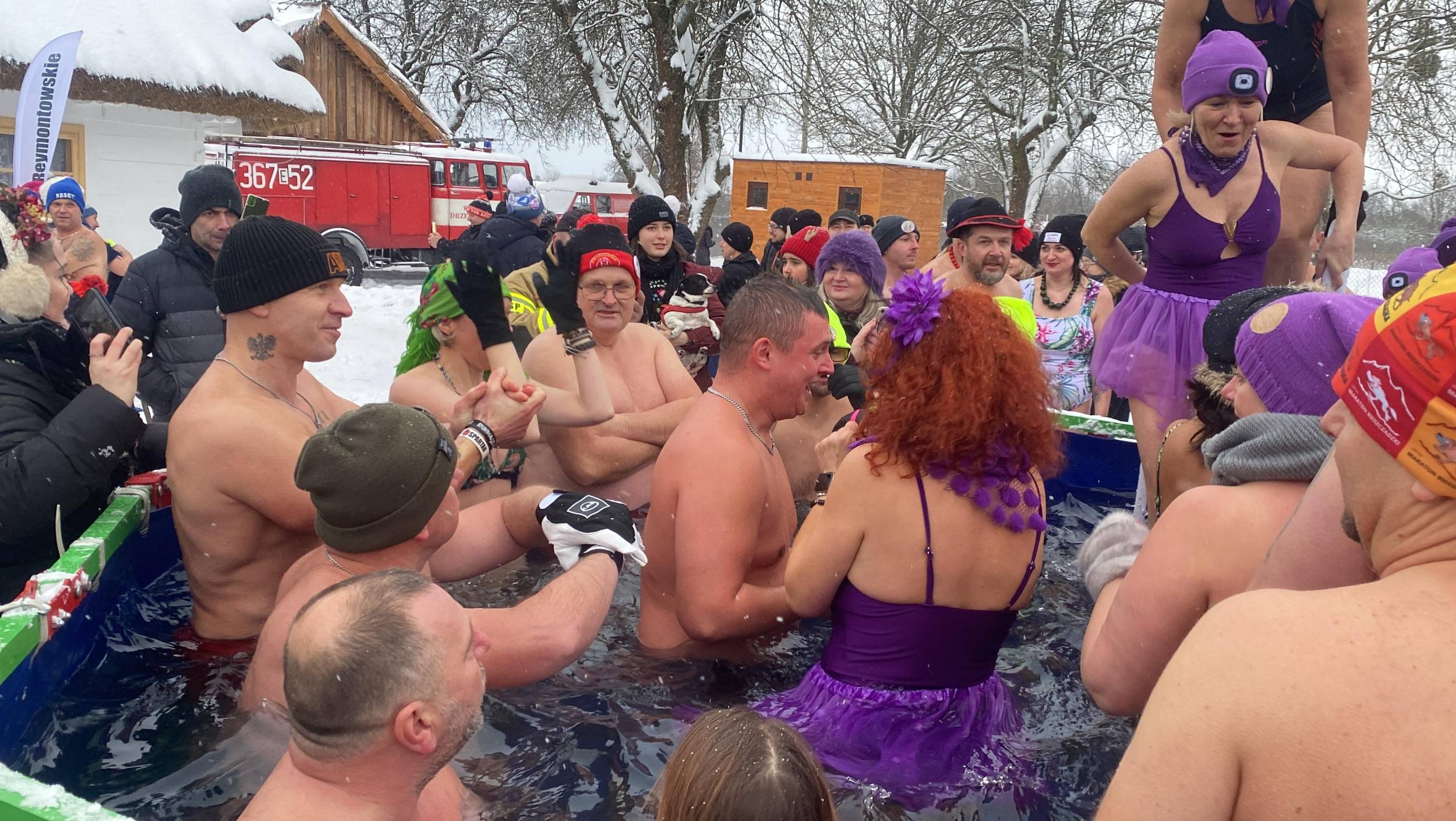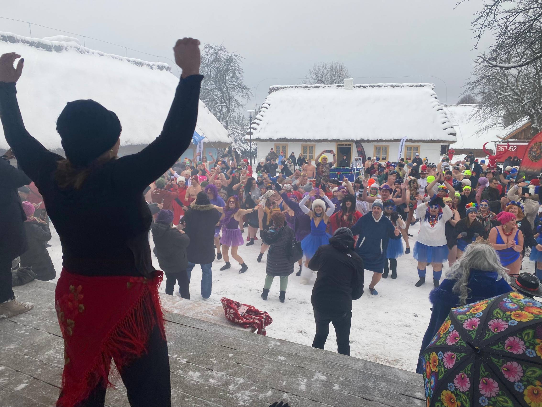 Baseny z lodowatą wodą ustawione wśród drewnianych chałup i zabytkowych zabudowań szybko stały się centrum wydarzeń. Uczestnicy, ubrani w kolorowe czapki, stroje kąpielowe i szerokie uśmiechy, z odwagą zanurzali się w zimnej wodzie, a każdemu wejściu towarzyszyły okrzyki dopingu i salwy śmiechu. Zdjęcia z wydarzenia nie pozostawiają wątpliwości - zabawa była przednia, a energia uczestników zaraźliwa.