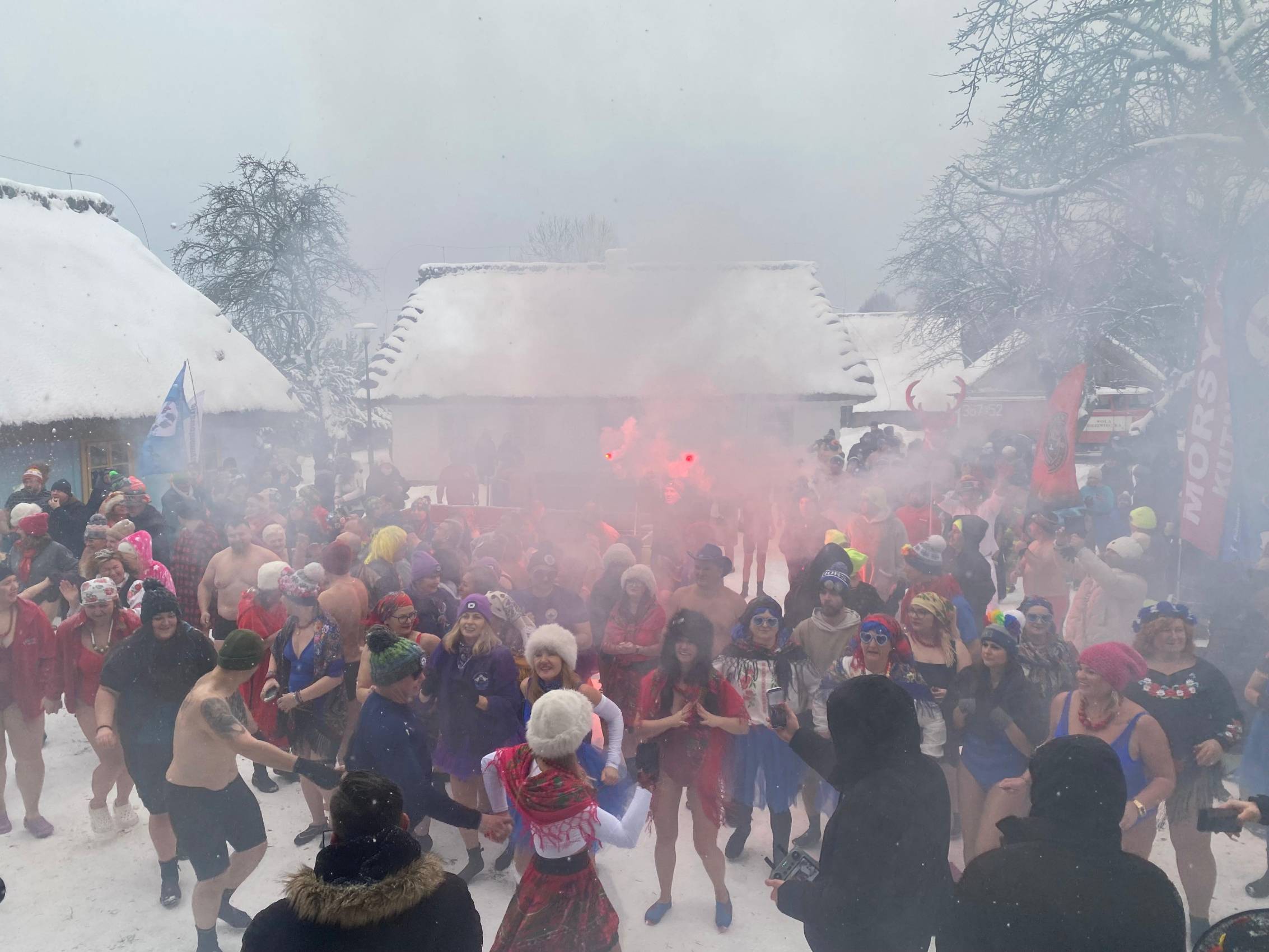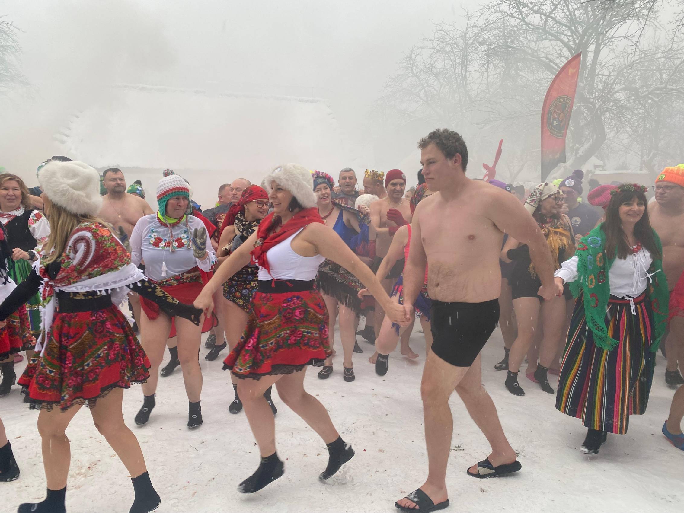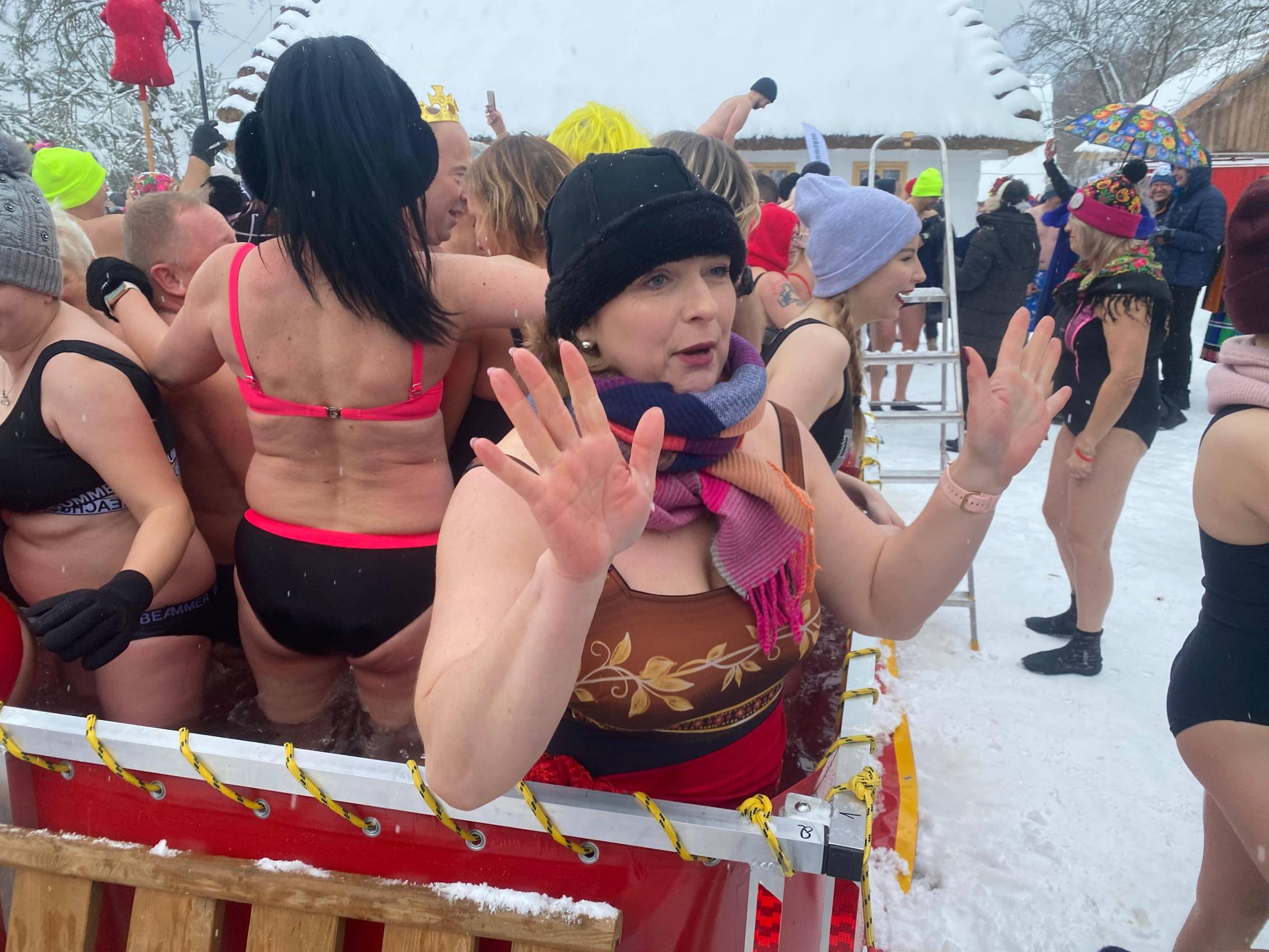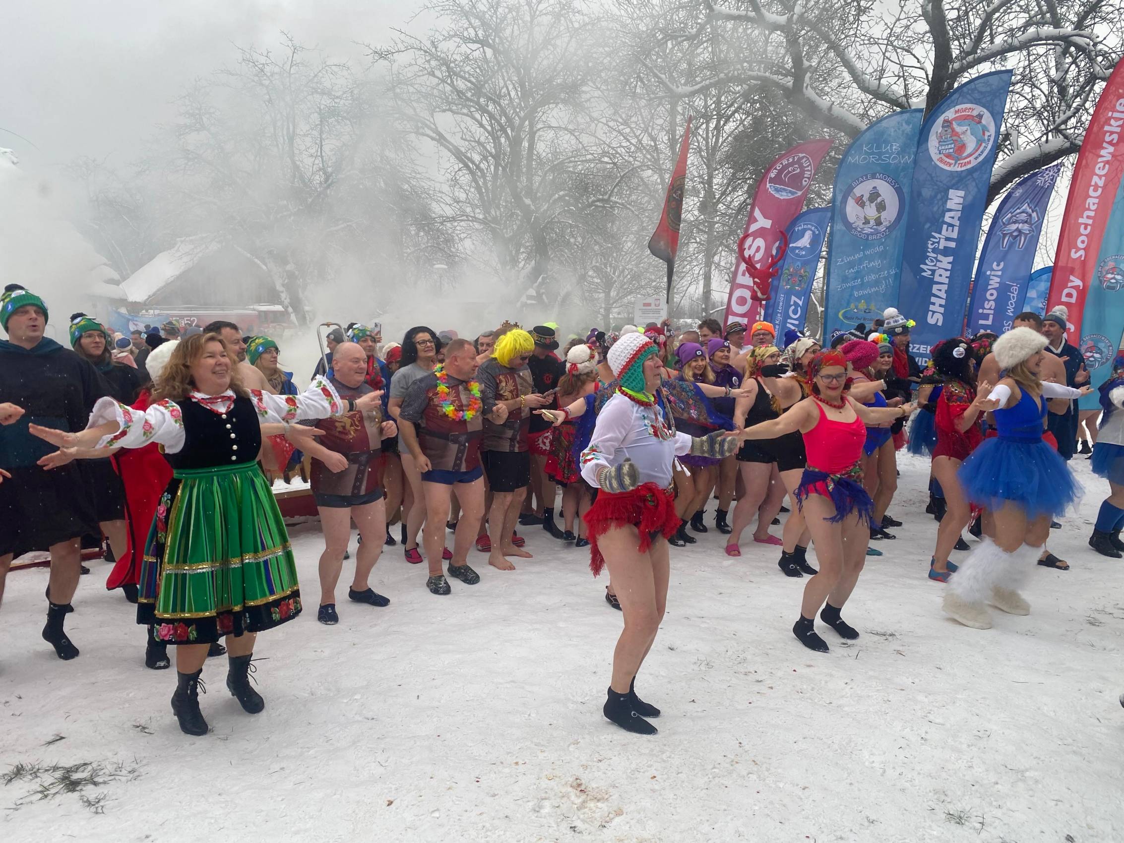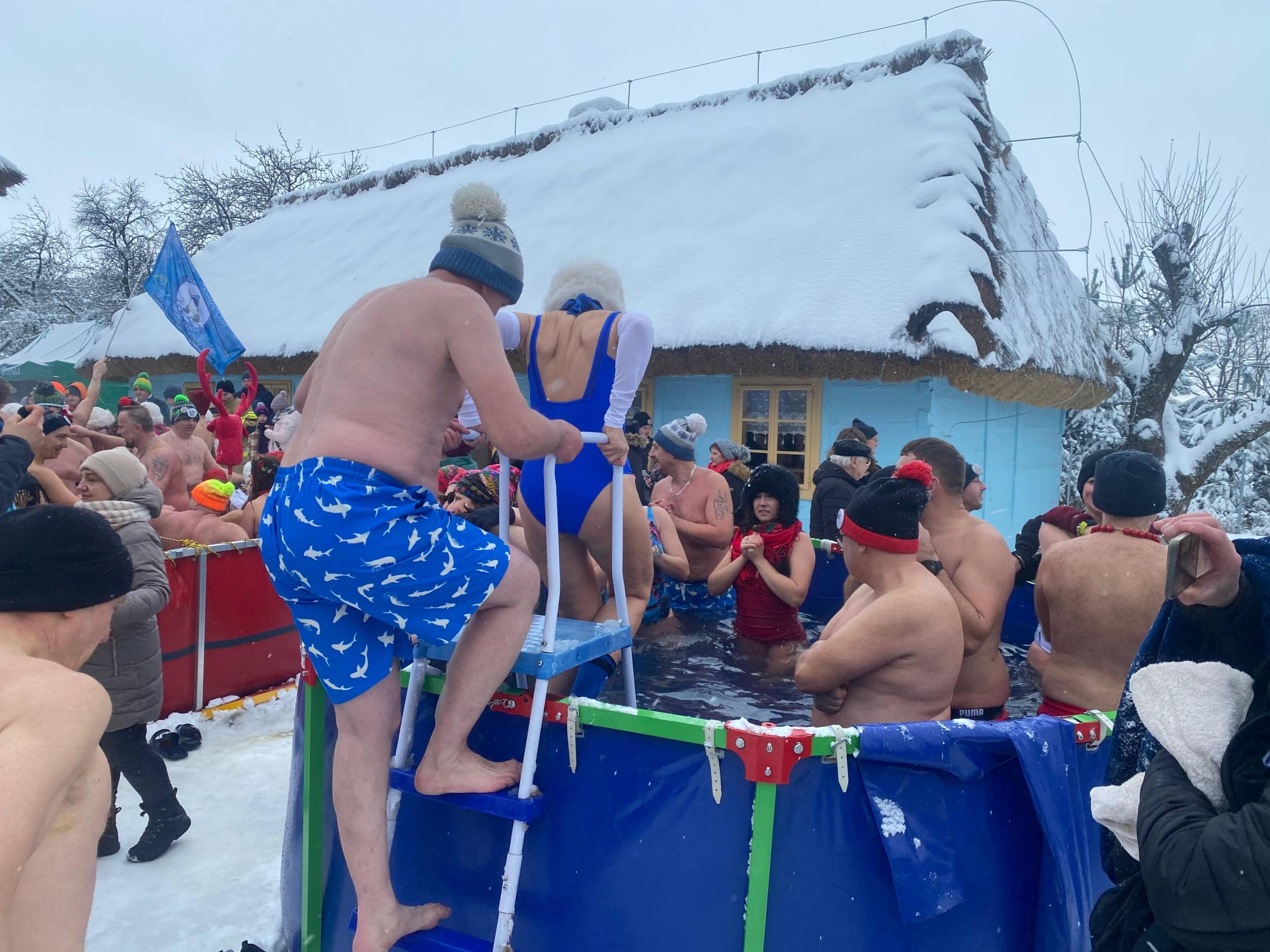 Baseny z lodowatą wodą ustawione wśród drewnianych chałup i zabytkowych zabudowań szybko stały się centrum wydarzeń. Uczestnicy, ubrani w kolorowe czapki, stroje kąpielowe i szerokie uśmiechy, z odwagą zanurzali się w zimnej wodzie, a każdemu wejściu towarzyszyły okrzyki dopingu i salwy śmiechu. Zdjęcia z wydarzenia nie pozostawiają wątpliwości - zabawa była przednia, a energia uczestników zaraźliwa.
