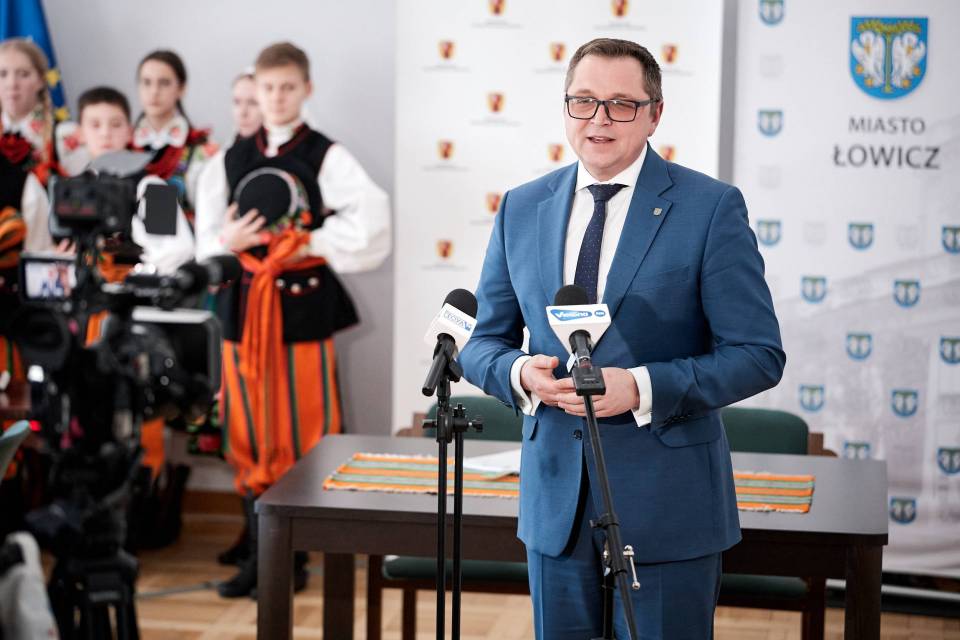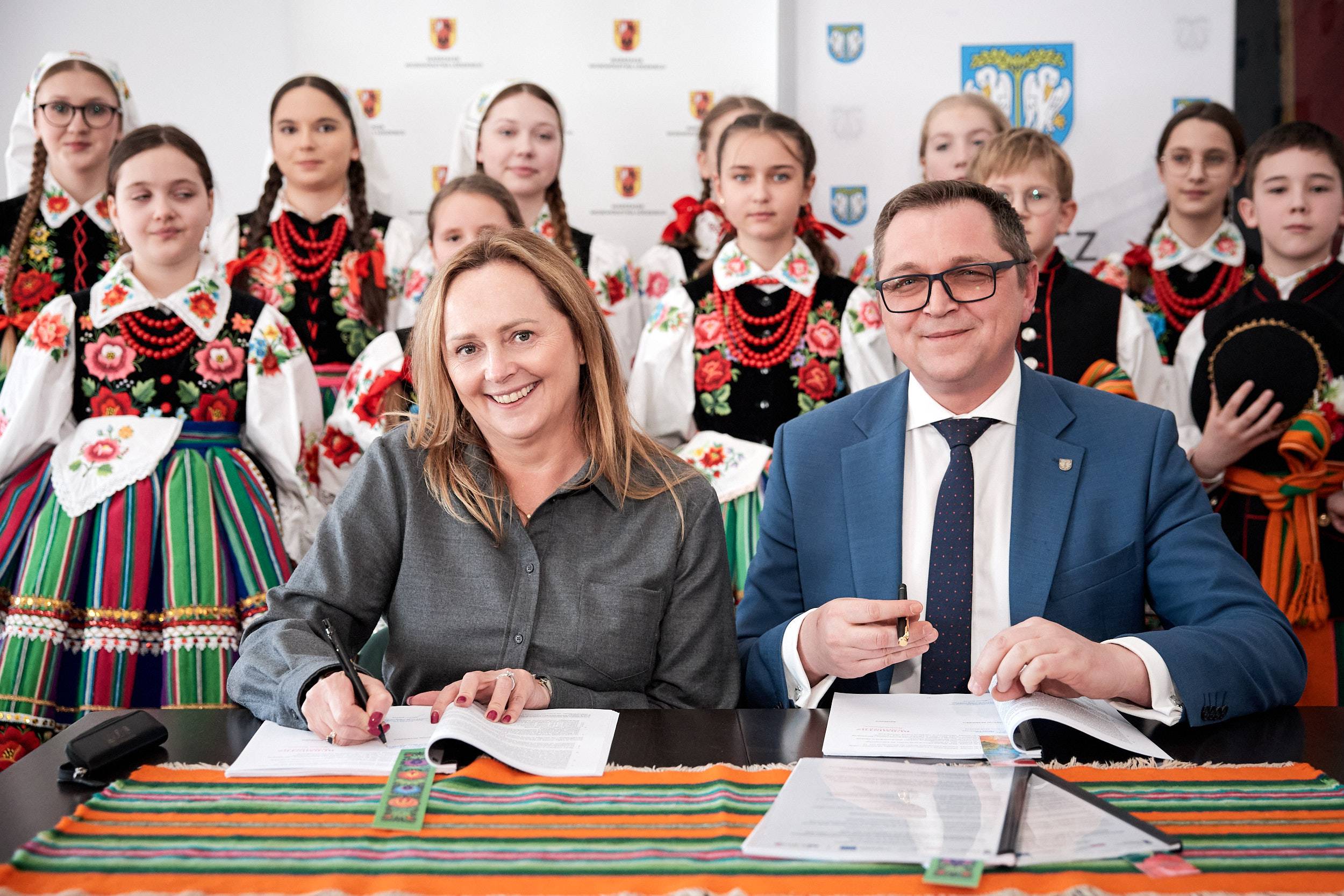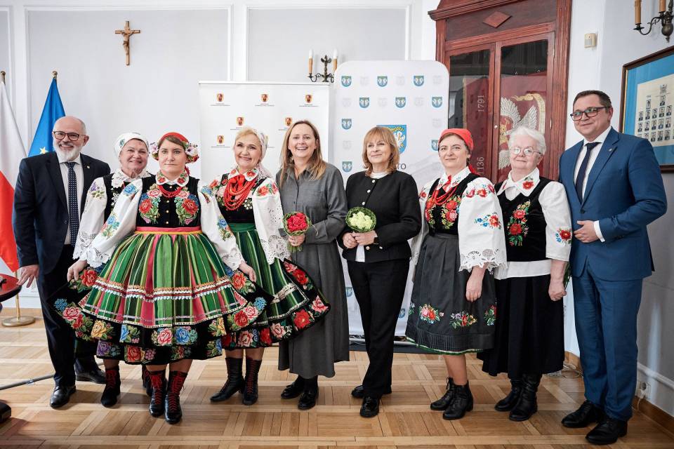 - A folklor to jest opowieść o nas samych. I to od nas zależy, jak ją napiszemy. Trzymam mocno kciuki, abyście napisali piękną historię, którą z dumą będziemy przekazywać kolejnym pokoleniom - mówiła marszałek Joanna Skrzydlewska zwracając się m.in. do twórczyń ludowych i dzieci z zespołu ludowego Koderki, które towarzyszyły władzom Łowicza przy podpisaniu umowy na dofinansowanie Centrum Folkloru.