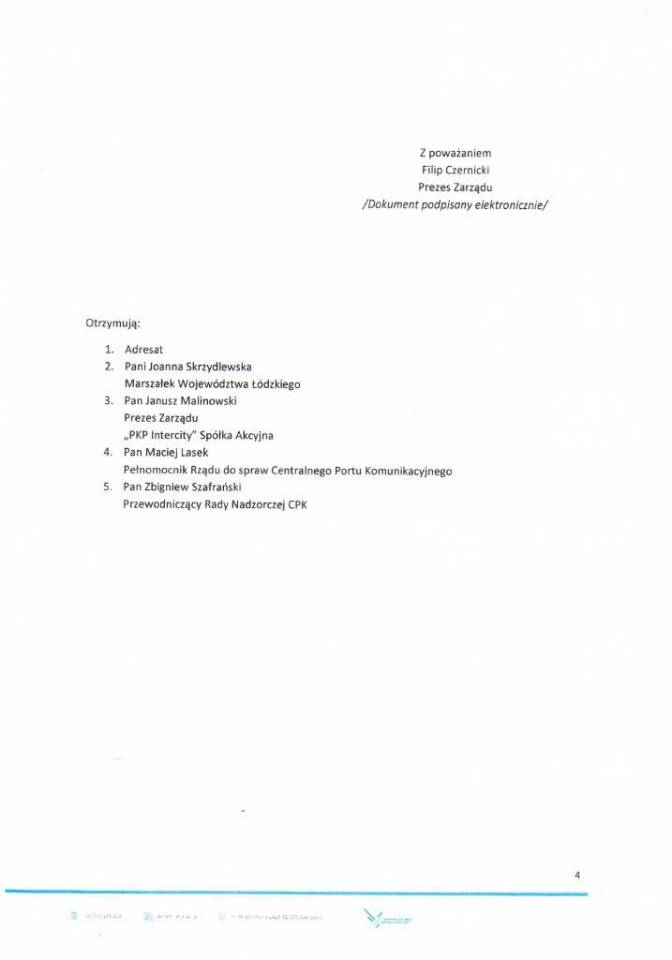 Pełna treść listu Filipa Czernickiego, Prezesa Zarządu CPK poniżej: