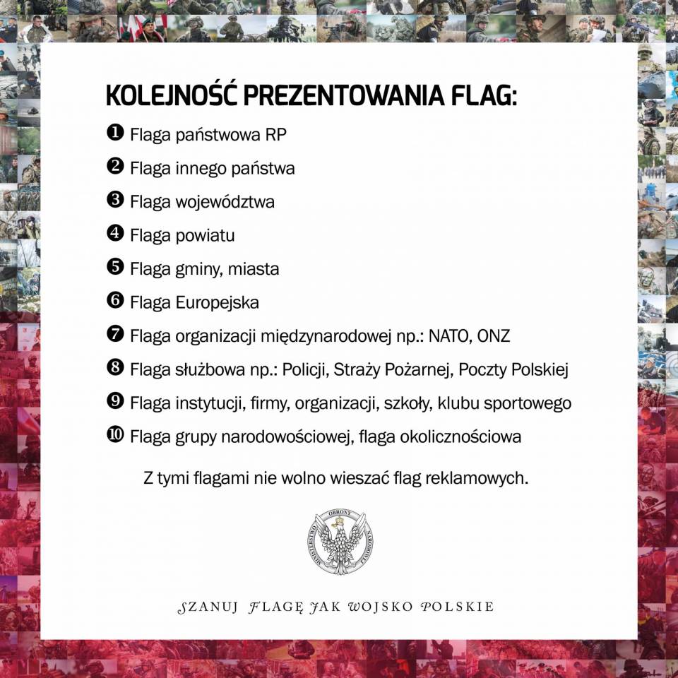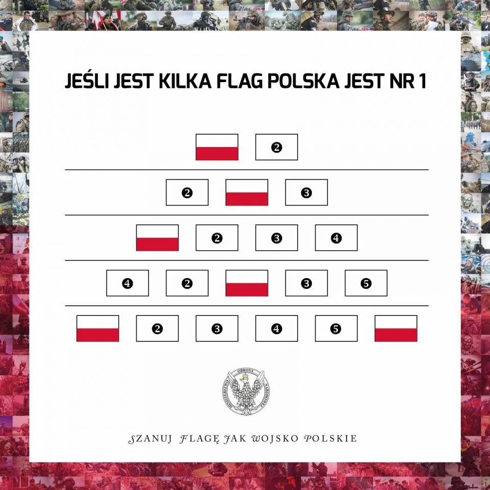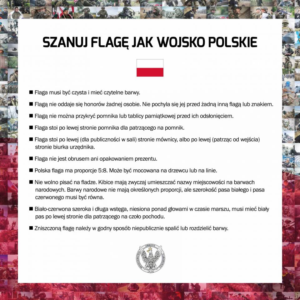 Przed Dniem Flagi i Świętem Narodowym 3 maja, MON i Wojsko Polskie przypominają o najważniejszych zasadach prezentowania barw narodowych. Żołnierze z całej Polski nagrali filmik z przesłaniem „SZANUJ FLAGĘ JAK WOJSKO POLSKIE".