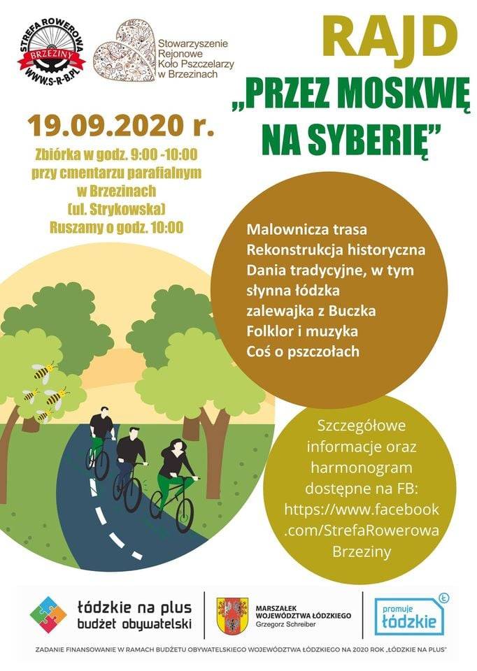 W sobotę, 19 września odbędzie się Rajd "Przez Moskwę na Syberię". Organizatorami są: Strefa Rowerowa Brzeziny oraz Stowarzyszenie Rejonowe Koła Pszczelarzy w Brzezinach.