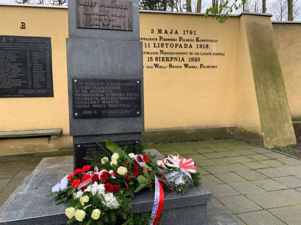 Władze powiatu brzezińskiego - Starosta Renata Kobiera, Wicestarosta Ryszard Śliwkiewicz, Przewodniczący Rady Powiatu Krzysztof Bogdański, władze Brzezin - Burmistrz Ilona Skipor, Wiceburmistrz Jakub Piątkowski, Przewodniczący Rady Miasta Grzegorz Maślanko, a także Poseł na Sejm VIII Kadencji Roman Sasin oraz m.in. przedstawiciele Stowarzyszenia „Patriotyczne Brzeziny” złożyli kwiaty przed pomnikiem Józefa Piłsudskiego.