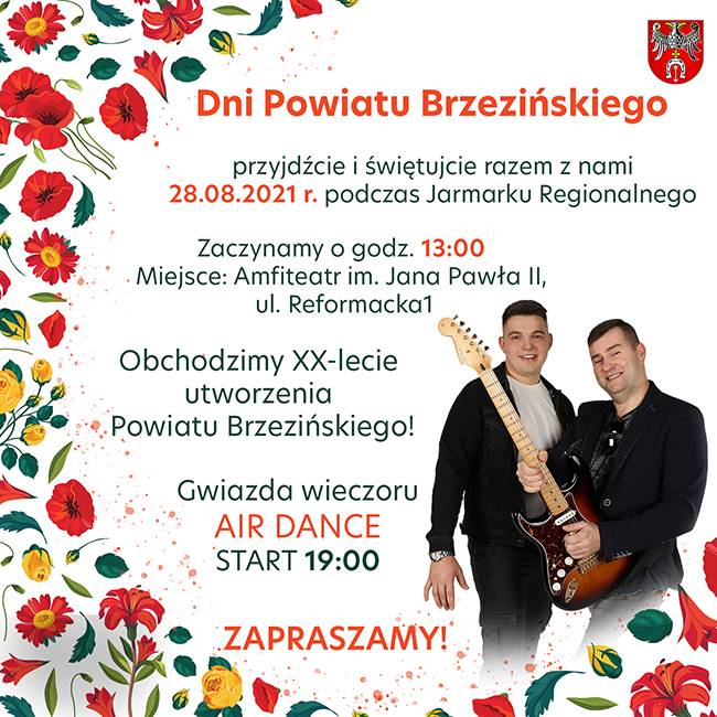 - Przyjdźcie i świętujcie razem z nami 20-lecie utworzenia Powiatu Brzezińskiego! Zaczynamy o godzinie 13:00 w Amfiteatrze im. Jana Pawła II, ul. Reformacka 1. Czekają na Was liczne atrakcje, m.in. występ zespołu AIR DANCE! Liczymy na Waszą obecność! - zachęcają organizatorzy.