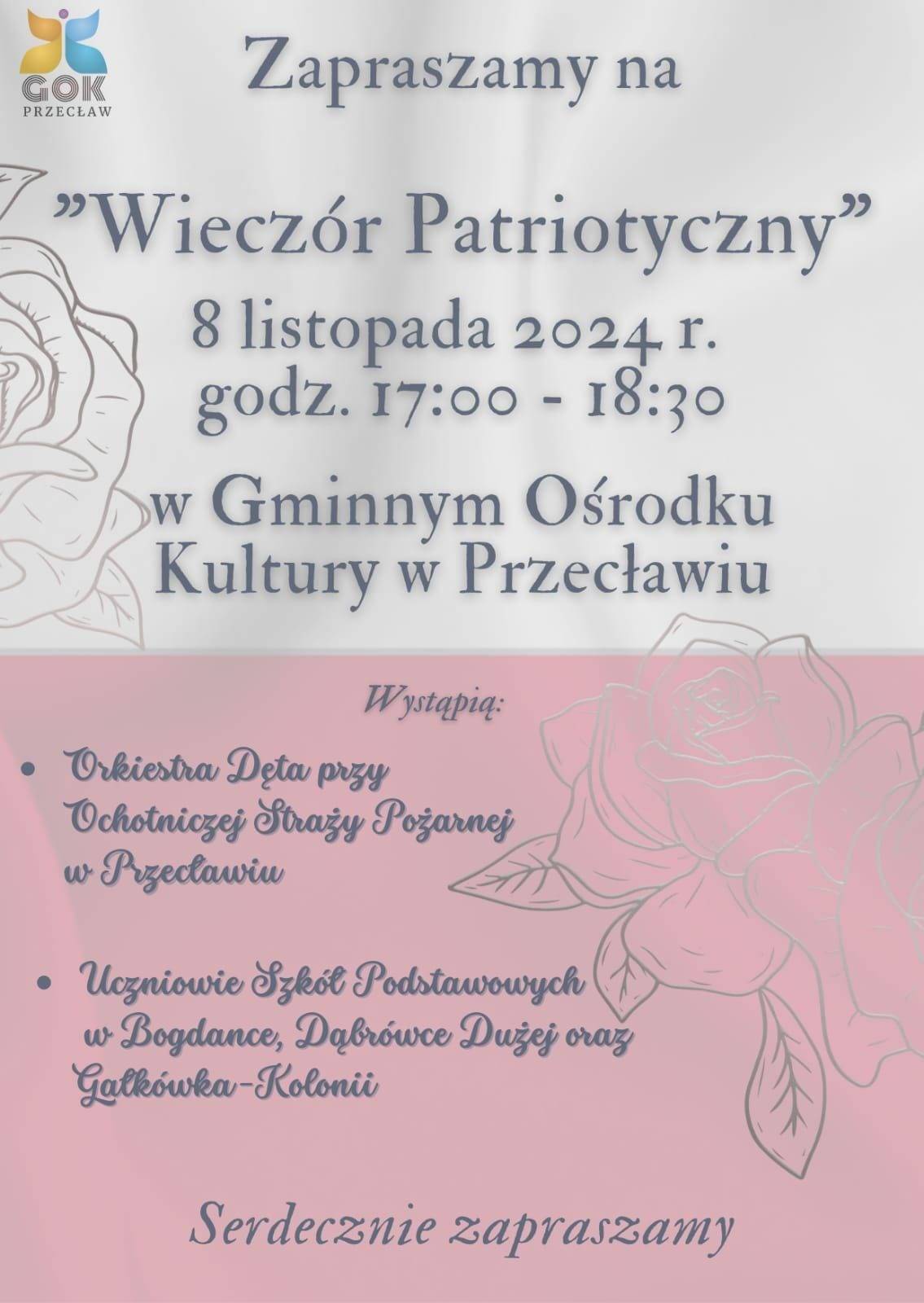 Gminny Ośrodek Kultury w Przecławiu zaprasza na "Wieczór Patriotyczny", który odbędzie się w piątek (8 listopada).
